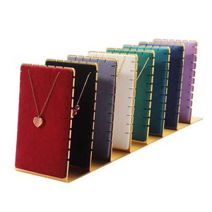 Grâce à sa conception verticale, ce présentoir pour collier enfant maintient les chaînes bien en place et évite les nœuds. Il met parfaitement en valeur les pendentifs et permet aux clients de visualiser immédiatement le bijou porté, facilitant ainsi la décision d’achat.